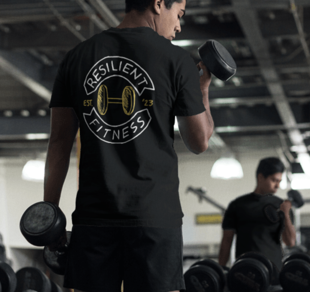 This design encapsulates the essence of the brand's ethos, symbolizing resilience, strength, and determination. This cohesive fusion of elements communicates Resilient Fitness's commitment to empowering individuals on their fitness journey, instilling confidence and endurance.